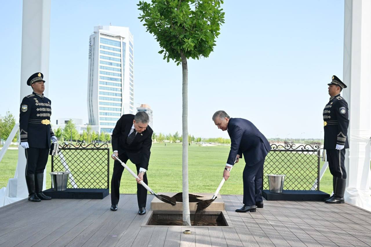Prezident Shavkat Mirziyoyev va turkman xalqining milliy yetakchisi, Turkmaniston Xalq maslahati raisi Gurbanguli Berdimuhamedov Samarqand shahridagi Kongress markazining Faxriy mehmonlar xiyobonida birgalikda eman daraxtini ekdi.